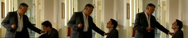 Ich kann leider keine Screen-Shots machen, aber am Ende des Filmes tritt Shaw doch als asiatischer Kampfsportler in Shogun-Outfit auf - in wallenden Hosen, mit Leder an den Armen, zwei Zpfchen an den Seiten und eins oben auf dem Kopf...