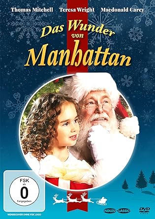 Heutiger Weihnachts Rewatch Film ist (aus Zeitgründen) der nur das knapp 45minütige TV-Remake "DAS WUNDER VON MANHATTAN" ("MIRACLES ON 34. STREET") aus dem Jahre 1955. In diesem Remalke des 1947er Klassikers spielen Thomas Mitchell, Teresa Wright, Macdonald Carey und Whit Bissell. Kris Kringle (Mitchell), ein Kaufhaus Weihnachtsmann, verursacht ziemliche Aufregung, indem er vorschlägt, dass Kunden zu einem Konkurrenzgeschäft für ihre Einkäufe gehen....aber das ist erst der Anfang des ganzen Chaos. Denn er läßt jeden handfest glauben, er sei der echte Weihnachtsmann und bringt dadurch, besonders das Leben von Doris Walker (Wright), Geschäftsführerin des Kaufhauses, die ihre Tochter Susan (Sandy Descher) streng ohne jeglichen Phantasie-Glauben erzieht, mächtig durcheinander. Kringle steht vor einer schweren probe, gerade Dusan zu beweisen, dass der der echte Weihnachtsmann ist...