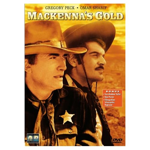 Heutiger Gregory - Peck - Film ist der Western-Klassiker "MACKENNAS GOLD" aus dem Jahre 1969 mit großem Staraufgebot: Omar Sharif, Telly 'Kojak' Savalas, Eli Wallach, Edward G. Robinson, Julie Newmar, Camilla Sparv, Burgess Meredith, Keenan Wynn, Lee J. Cobb, Raymond Massey, Anthony Quayle und Ted Cassidy. Marshall MacKenna (Peck) erschiesst aus Versehen einen alten Häuptling, der glaubte, MacKenna will ihm seine Karte stehlen, die den versteckten Platz eines über 300 Jahre alten Apachengoldschatzes birgt, der für diese heilig ist. MacKenna hält das alles für ein Märchen und verbrennt die Karte, ehe sie noch mehr Unheil anrichtet. Doch eine Gaunerbande, angeführt von dem Verbrecher und sadistischen Mörder John Colorado (Sharif) entführen MacKenna, dessen Gedächtnis an die Karte nun die einzigste Chance auf den Fund ist. Doch auch die Apachen selbst sind dahinter her, da der alte Apache seinen eigenen Landsmännern nicht trauen konnte. Eine blutige und dramatische Reise um die Jagd nach dem Gold beginnt.... Basierend auf den gleichnamigen Roman von Heck Allen (unter dem Pseudonym Will Henry).