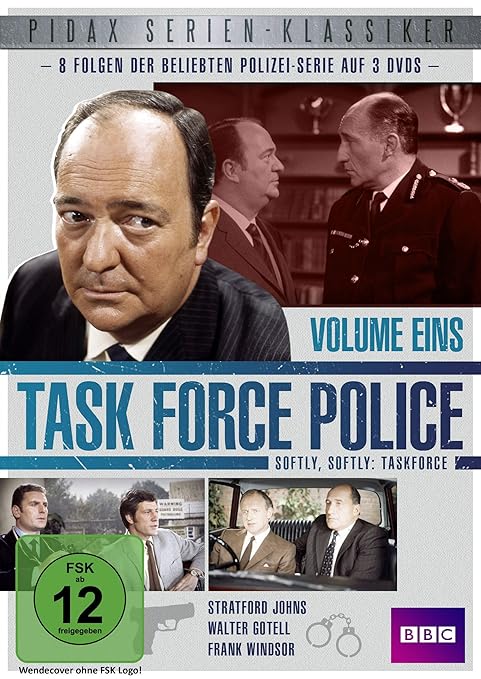 Die Wurzeln dieser Serie liegen in der englischen TV-Legende Z Cars, ersonnen von Troy Kennedy Martin. Die von der Polizei verwendeten Streifenwagen waren Ford Zephyrs, daher der Titel. Z Cars’ bekannteste und populärste Figuren waren Detective Chief Inspector Charlie Barlow, gespielt von Stratford Johns, und Detective Sergeant John Watt (Frank Windsor), die nach dem vorläufigen Ende von Z Cars mit dem Spin-Off Softly Softly weitermachten. Dieses ging im Januar 1966 mit der Episode „Off Beat“ auf Sendung. Viereinhalb Staffeln wurden in s/w gedreht. Am 13. November 1969 ging die letzte Folge dieser Ära, „Write Off“, auf Sendung. Eine Woche später, am 20. November und damit genau in der Mitte der Staffel (!), erschien Softly Softly mit neuem Gesicht (in Farbe) und neuem Serientitel (Softly, Softly: Task Force). In dieser Phase komplettierten Detective Inspector Hawkins (gespielt von Norman Bowler), PC Snow (Terence Rigby), PW Detective Constable Donald (Susan Tebbs), Chief Constable Arthur Cullen (Walter Gotell), Sgt. Jackson (David Alister) und Sgt. Evans (David Lloyd Meredith) das Lineup. Verantwortlich für die Erschaffung des neuen Formats war Elwyn Jones, der in der Folgezeit viele Folgen selbst beisteuerte. Inhaltlich kommen große und kleine Probleme auf sehr menschlich dargestellte Beamte zu; es gibt viele Hauptfiguren, die recht gleichrangig behandelt werden, und das Privatleben der Protagonisten spielt eine große Rolle. Alle „deutschen“ Task Force Police-Folgen entstammen der Softly Softly: Task Force-Ära zwischen November 1969 und Januar 1973 (Daten der englischen Erstausstrahlung). (Text: Werner Schmitz) Spin-Off von Z Cars Und damit macht das dann auch Sinn mit den 16 Folgen der "1.Staffel" (die ja eigentlich die 2.Hälfte der 5.Staffel ist  ). Ganz schön verwirrend: Also erst Z-Cars, dann das Spin Off "Softly, Softly" ab 1966 für 4 1/2 Staffeln in s/w, dann "mitten" in dieser 5.Staffel der "Neubeginn" als "Softly,softly:Task Force" in Farbe  Ich freue mich jedenfalls schon sehr auf die 1.Staffel