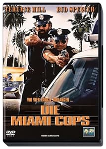 Heutiger Spencer / Hill Film war ihr vorletzter, gemeinsamer Film "DIE MIAMI COPS" aus dem Jahr 1985. Als FBI Agenten muß das schlagkräftige Duo aus einem Gangster, der gerade aus der Haft entlassen wurde, herausbekommen, wo er die Beute nach seinem letzten Banküberfall versteckt hat und finden die Spur zu dessen Partner, der mittlerweile ein einflußreicher Geschäftsmann in Miami ist. Zusammen mit Buffy Dee und Ex-"Flipper" - Star Luke Halpin in einer kleinen Nebenrolle. Der Stil des Titelthemes, besonders der Bildwahl erinnert stark an die 80er Jahre Kultserie "Miami Vice", welche zu der Zeit in der 2. Staffel lief und seinerzeit da ein Strassenfeger war. Vermutlich gabs deswegen ein leichtes Anlehnen darin. Zudem fällt auch auf, das die Prügelszenen in diesem Film, längst nicht so albern übertrieben dargestellt wurden, wie in den gemeinsamen Filmen aus den 70er Jahren, sondern schon mehr realistischer. Auch stand die Handlung des Films etwas mehr im Vordergrund als gewöhnlich.