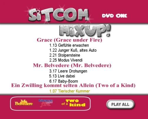Ich hatte einige einzelne Folgen aus verschiedenen Sitcoms, wo eine DVD fr jede einzelne Sitcom sich nicht gelohnt htte, deshalb erstellte ich mir eine "SITCOM MIXUP BOX". Diese umfasst 2 DVD`s mit 17 Folgen aus 6 Sitcoms (Siehe COVER).