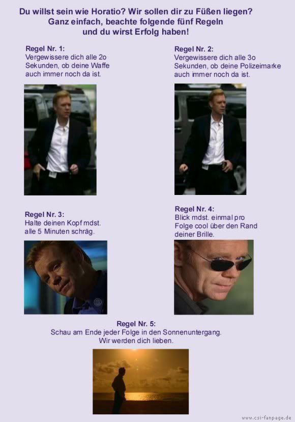 Das "Du willst wie Horatio sein" kenne ich schon, find ich auch so ziemlich genial *gg* |