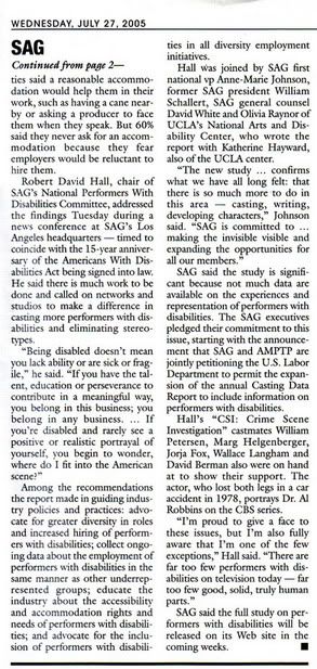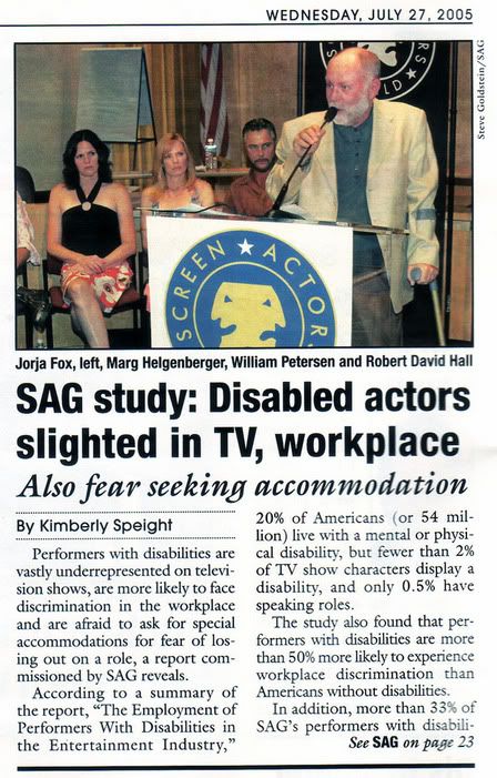 Stimmt schon, man sieht wirklich selten Schauspieler, die tatschlich "behindert" sind. Hall, Marlee Matlin und Jim Byrnes sind spontan die einzigen, die mir jetzt einfallen. Gerade auch Blinde werden ja wohl fast immer von sehenden gespielt etc.