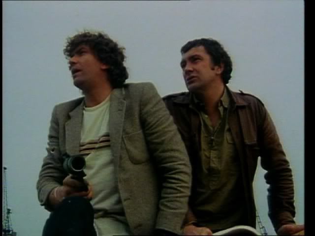 Und eins im Auto. Mit Cowley, Bodie, Doyle und Benny.