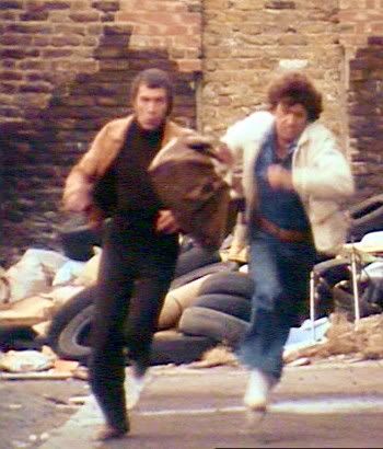Klasse Schnappschsse, Juliet. Vor allem das Bild, wo man Bodie und Doyle von hinten wegrennen sieht.  Und das Bild, wo Bodie und Doyle ber dem Tisch kucken. Bodie als Vier-Auge und Doyle mit einer langen Nase.