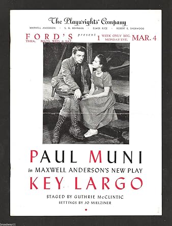 Maxwell Anderson: Key Largo. A Play in a Prologue and Two Acts. Anderson House, Washington, D.C. 1939, 125 S. (bislang keine deutsche bertragung)