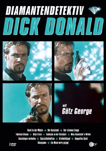 13 Episoden (1 Staffel) Deutsche Erstausstrahlung: 13.01.1971 (ZDF)Dick Donald ist im Auftrag eines Diamantensyndikats unterwegs um Diebstahl und Schmuggel der begehrten Diamanten zu unterbinden, oder - wenn es dazu zu spät ist - zu verfolgen und aufzuklären. Ein gefährlicher Job, denn den Dieben geht es um viel Geld, so daß sie oft auch vor Mord nicht zurückschrecken. aus: Der neue Serienguide13-tlg. dt. Actionserie von Heinz Bothe-Pelzer, Regie: Jürgen Goslar, Erich Neureuther. Dick Donald (Götz George) ist als Detektiv in Südafrika Diamantenschmugglern und -dieben auf der Spur. Er arbeitet im Auftrag des internationalen Diamantensyndikats IDSO. Daisy Johnson (Loni von Friedl) ist seine Assistentin. Rasante Krimiserie mit viel Geballer und Verfolgungsjagden, die an Originalschauplätzen in Südafrika gedreht wurde. Ihr Ende blieb offen: Ein schwer verwundeter Dick Donald bricht am Schluss von Folge 13 zusammen, und die Serie ist zu Ende. Eine Fortsetzung gab es nicht. Götz George hatte später als Schimanski im Tatort wesentlich größeren Erfolg. George und von Friedl waren damals im wirklichen Leben ein Paar. Die halbstündigen Folgen liefen mittwochs am Vorabend. Quelle: Das Fernsehlexikon #Ungültiger YouTube Link#